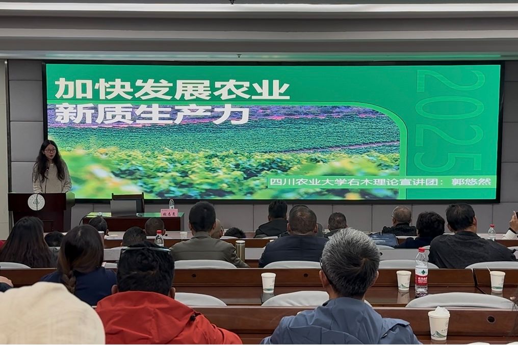 2025年11月6日上午,四川农业大学基地宣讲志愿者郭悠然在四川农业大学一教309报告厅,为继续教育学院“农业实用人才省级示范培训班”的学员们带来了一场题为《加快发展农业新质生产力》的专题宣讲。