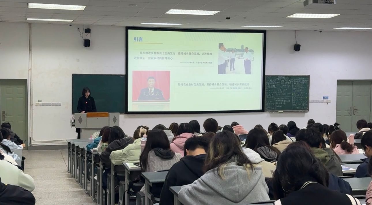 2025年11月17日,基地宣讲志愿者余沙碧走进4C106教室,面向财务、药学专业本科学生开展“城乡融合发展”主题宣讲活动。本次宣讲紧扣国家发展战略,深入解读城乡融合发展的政策内涵与实践路径,引导青年学子将个人发展与乡村振兴、国家现代化建设紧密结合。