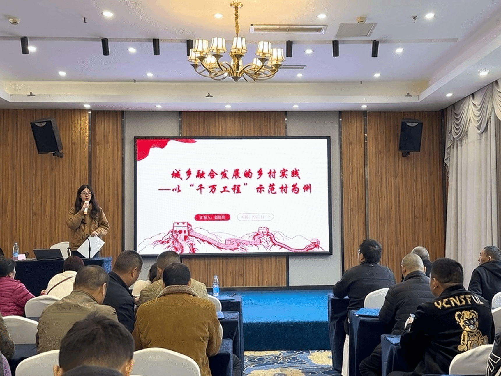 2025年11月19日,基地宣讲志愿者郭悠然前往温江怡家丽景酒店,为四川农业大学继续教育学院的天府新区高素质农民培训(粮油班)学员进行了宣讲。本次宣讲以“城乡融合发展的乡村实践——以‘千万工程’示范村为例”为核心主题,助力高素质农民拓宽发展视野、掌握乡村振兴的实用方法。