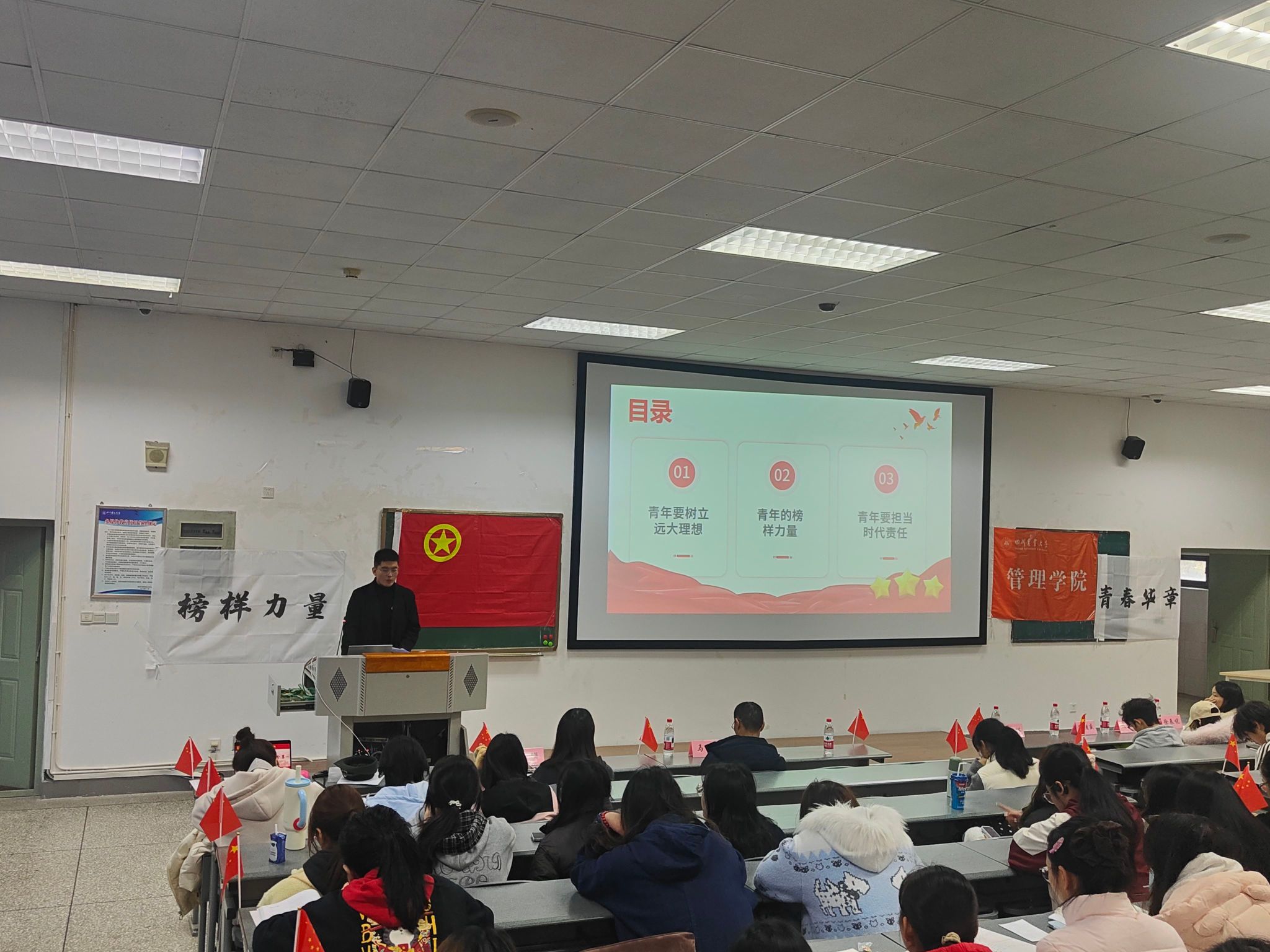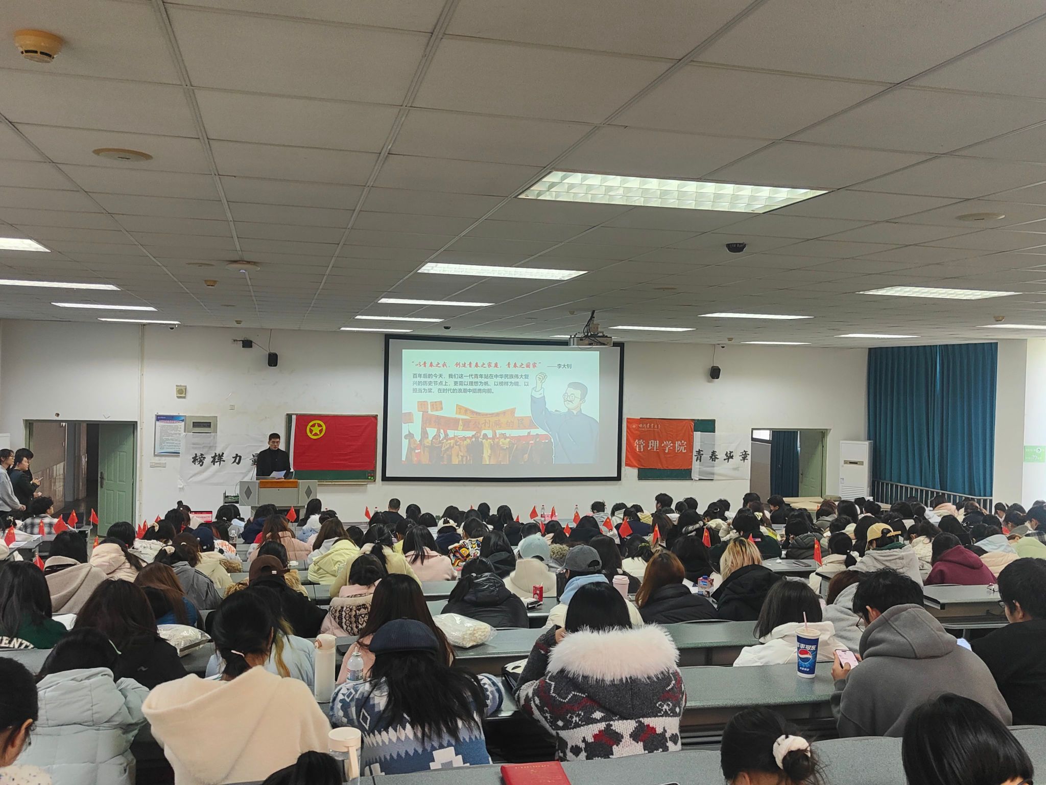 2025年12月2日,基地宣讲志愿者王嘉祺以“青春挺膺共担当”为核心,为四川农业大学管理学院财务202402班等六个团支部的240名学子开展宣讲,带领同学们在榜样故事中感悟初心使命,在时代号召中明确奋进方向。