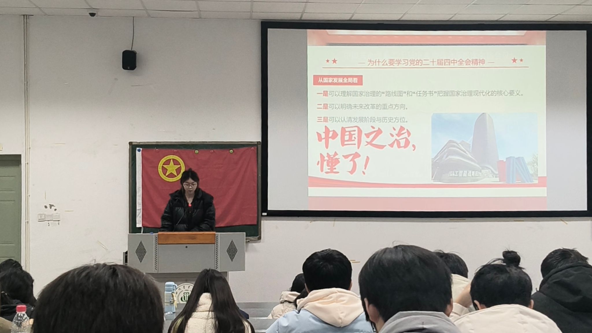 为深入学习贯彻党的二十届四中全会精神,12月9日,四川农业大学基地宣讲志愿者勾佳凝面向林学202401班全体同学开展主题宣讲。