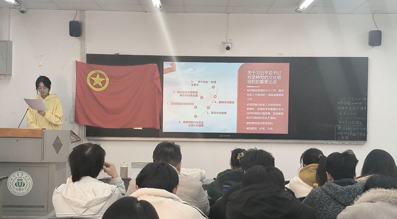 为深入学习贯彻习近平文化思想,准确把握其核心要义与实践要求,推动新时代文化建设各项工作落地见效,2025年12月16日,基地宣讲志愿者金紫玥走进四川农业大学风景园林202403班开展习近平文化思想专题学习会,通过系统宣讲、深度研讨等形式,引导学生在学思践悟中坚定文化自信、担当文化使命。