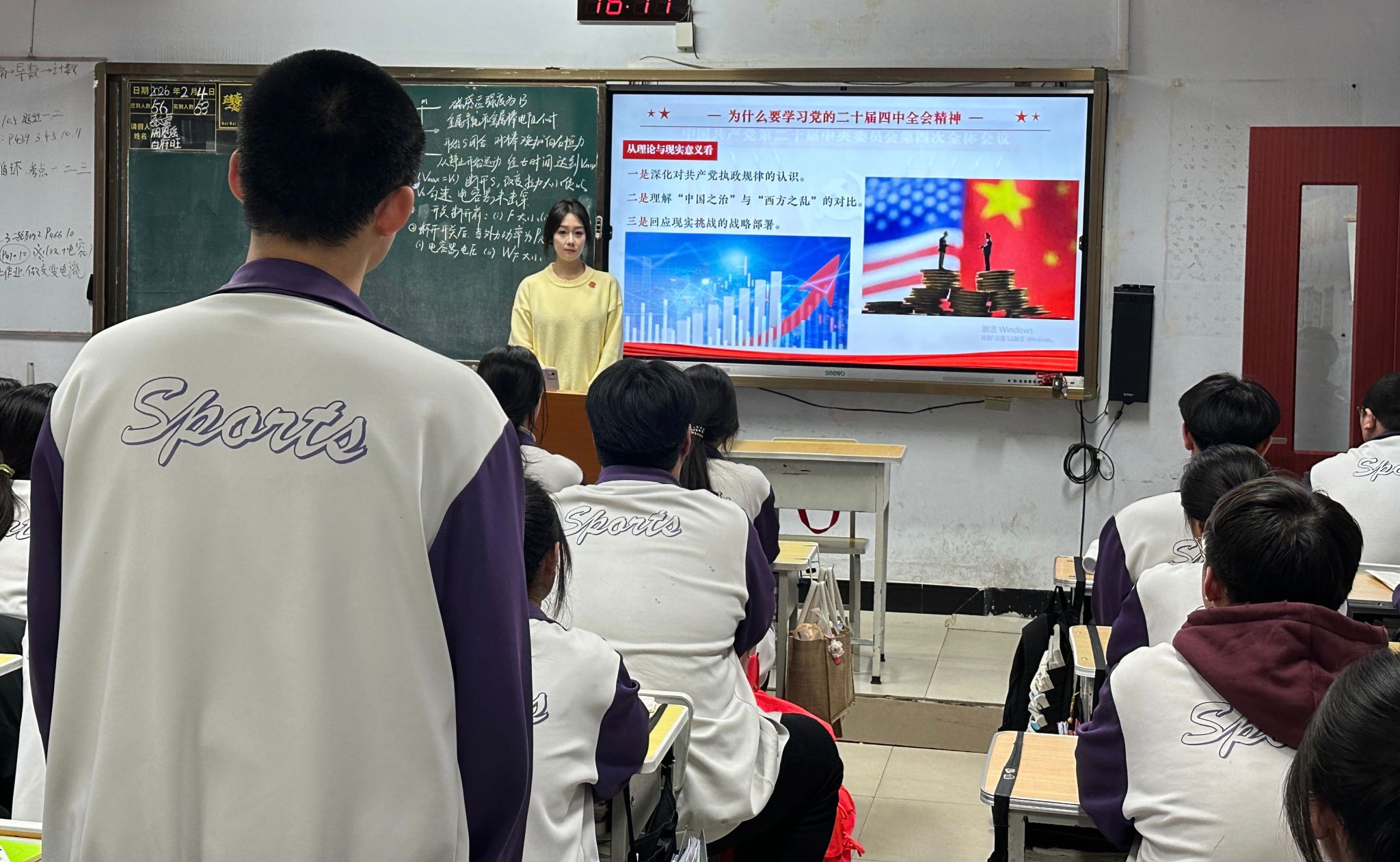 程宇向同学们讲述,学习全会精神是把握国家发展方向的“指南针”,能帮助学生认清历史方位、抓住发展机遇,同时增强社会认同感与凝聚力,为日常学习和人生规划提供根本遵循。针对全会主要内容,她重点解读了“十五五”时期经济高质量发展、科技自立自强、卫生健康保障等重点部署,尤其强调了“三农” 工作的重要性,介绍了加快农业农村现代化、推进乡村全面振兴、促进城乡融合发展等关键举措。用通俗易懂的语言,结合具体数据和高中生活实例,将宏大的国家战略与学生的现实生活相联系,让同学们深刻理解“中国式现代化”的丰富内涵,明白个人奋斗与民族复兴的紧密关联。