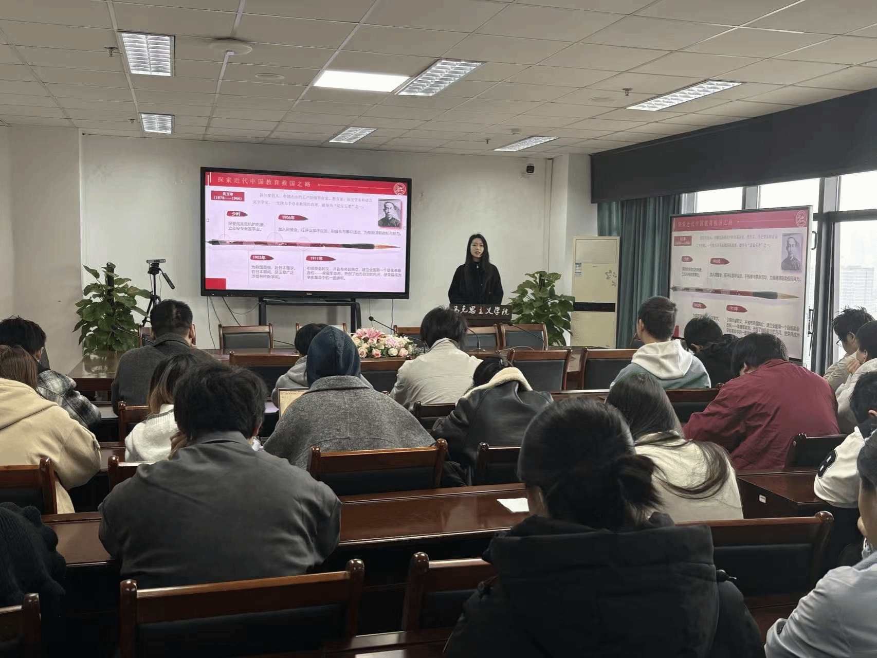 本次宣讲以吴玉章同志的人生历程为脉络,将百年峥嵘岁月中的奋斗故事转化为贴近青年的鲜活讲述,从探索教育救国之路、开拓革命教育阵地,到引领社会主义教育发展、坚守教育强国初心四个维度,全面梳理了吴玉章同志波澜壮阔的一生。彭硕循着历史的足迹,生动讲述了他从少年立志探寻救国良方,远赴海外求学,到投身辛亥革命、领导荣县起义的革命实践,再到加入中国共产党后,深耕根据地与新中国教育事业的无悔坚守。一个个详实的历史细节,一幕幕感人的奋斗场景,清晰勾勒出吴玉章同志始终坚守救国初心、一生躬身教育的崇高身影,深刻诠释了他以身许党、矢志不渝的忠诚担当和心系民族、躬身力行的家国情怀。
