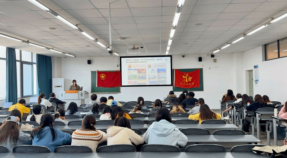宣讲中,龚兴笛从发展脉络、精神内核、实践担当三个维度,立体呈现了川农百廿砥砺前行的壮阔历程。她讲到,自1906年办学以来,学校历经九个重要发展阶段,从初创时的农业学堂,到两进两出四川大学的历史变迁,再到1956年独立建院、2017年跻身国家“双一流”建设高校行列,一步步实现了从地方性农院向高水平研究型大学的跨越式发展,书写了中国高等农业教育的豪迈史诗。她着重强调,王右木、江竹筠等革命先烈为学校烙下了鲜明的红色印记,“爱国敬业、艰苦奋斗、团结拼搏、求实创新”的川农大精神,早已融入代代川农人的血脉,成为学校薪火相传、蓬勃发展的不竭动力。