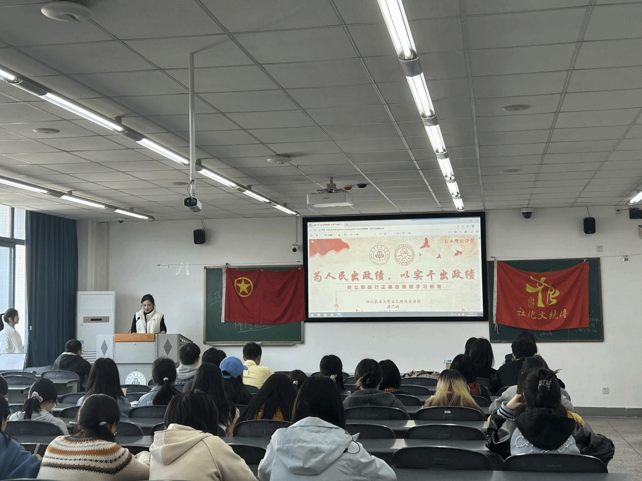 2026年3月31日,由四川省社科联科普处指导、四川省公民文化普及基地承办的“树立和践行正确政绩观学习教育”主题理论宣讲活动在四川农业大学举行,基地志愿者唐芯雨面向班团支部开展题为“为人民出政绩,以实干出政绩”的专题宣讲活动,吸引了众多学子到场聆听。